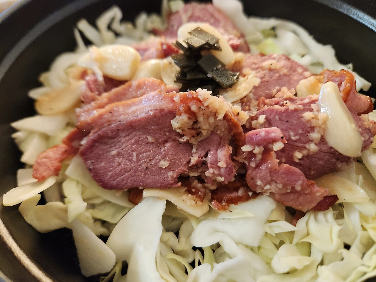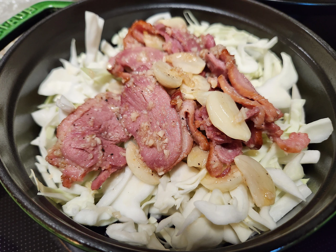 이건 그 망한 오리죽을 계기로 발전 한 레시피. 아직 나는 요리초보고 매일 배우고 실습 중이다. 실패를 경험 삼아 재도전한 오리솥밥. 고소하고 알싸한 마늘향이 입혀진 오리고기는 느끼하지 않고 담백했다. 26개월 아이와 육식파 남편의 합격점을 받았다.