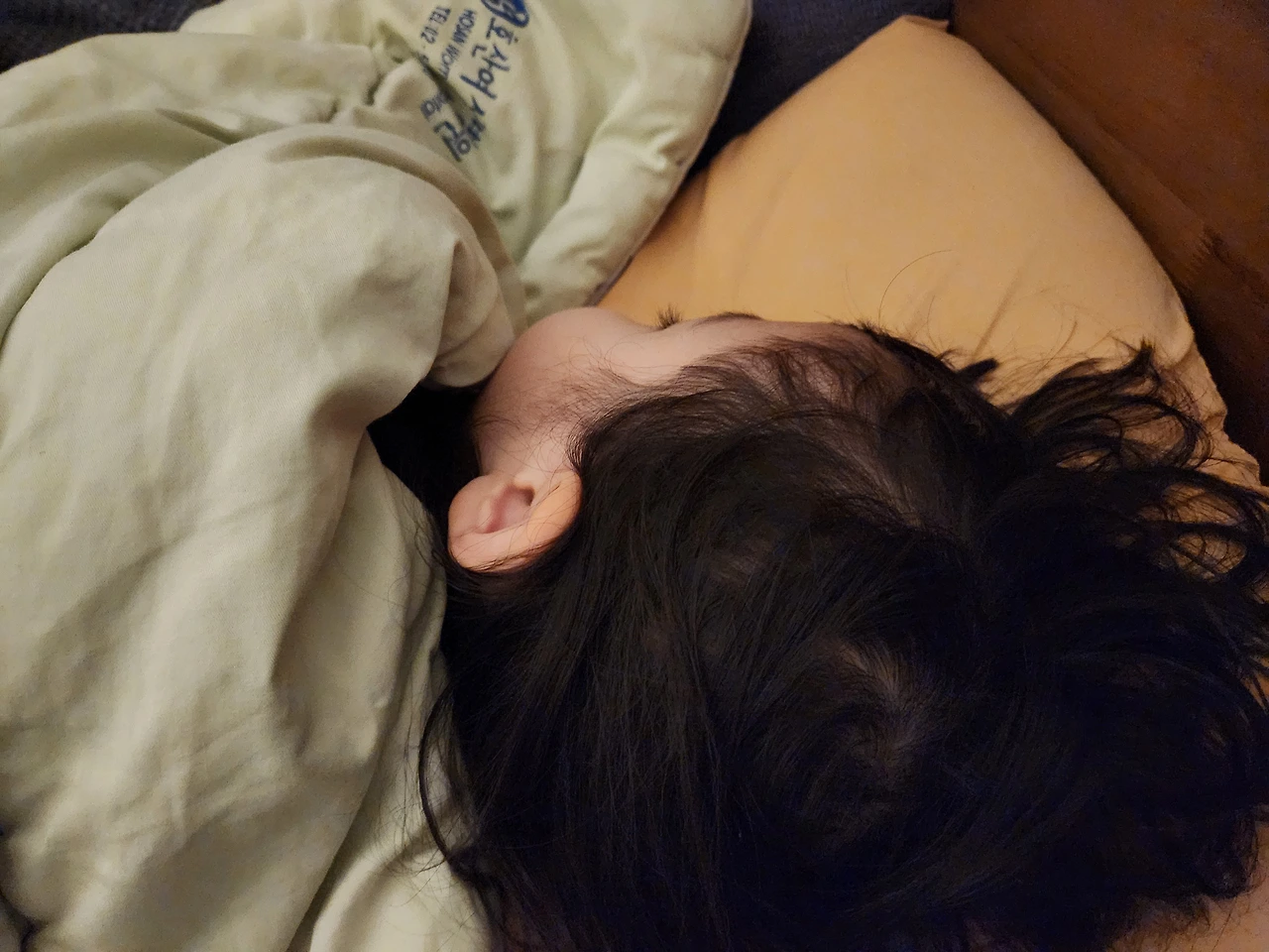 늦은 밤까지 침대에서 장난치고 놀다가 아이가 말한다.