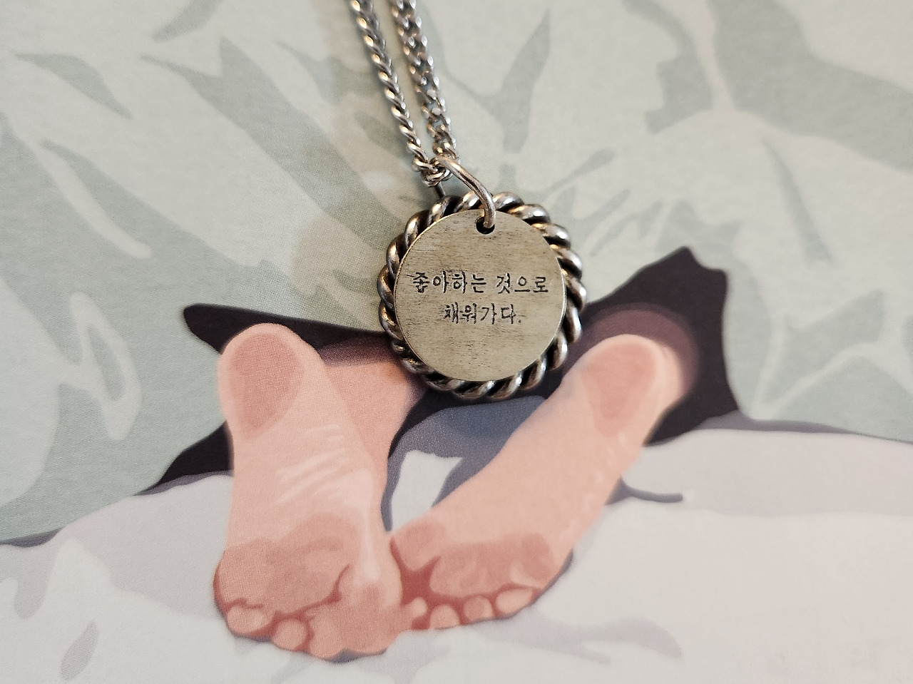 대략 20대 후반쯤 주문제작한 반지와 목걸이로 기억한다. 각각 다른 공방에 요청한 것인데, 당시 꽂힌 문구로 평소 지니고 싶어 나름 신중히 고민 후 주문했던 것으로 기억한다. 30대 초반쯤 이 목걸이와 반지를 꺼내봤을 때는 손발이 오그라들었다.