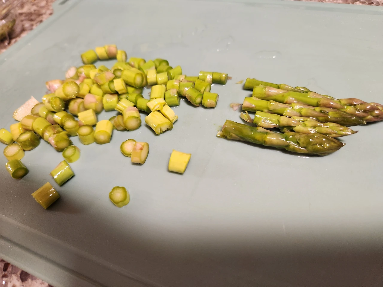 1인분/20분 [계란 야채 볶음밥] 베이비 아스파라거스 5개 계란 1개 남은 야채솥밥 또는 그냥 남은 밥 1팩 다진 마늘 1t 현미유 1T 국간장 1T 검은깨 또는 참깨 1T 냉장고에 남은 딜 1개(생략가능)