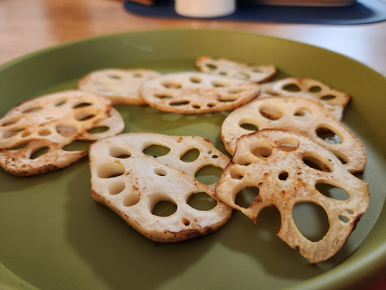 보통은 연근간장조림으로 밥반찬을 하지만 조림류는 짜기 때문에 뿌리채소의 영양분을 다량 섭취하기 어렵다. 입이 심심할 때는 과자대신 연근만 구워 먹는 것도 추천한다. 오늘의 재료 주인공은 연근이다.