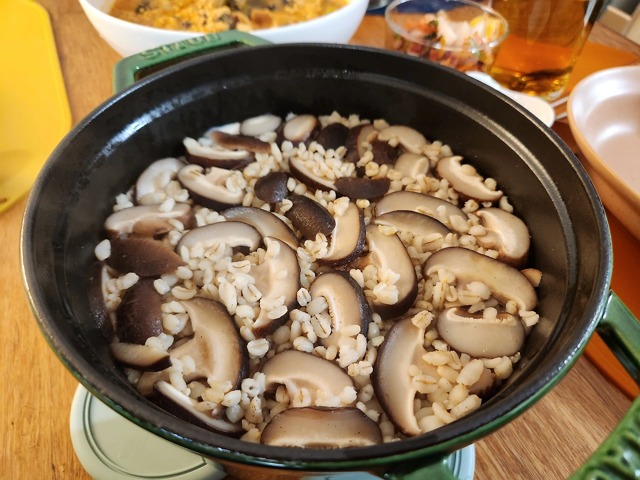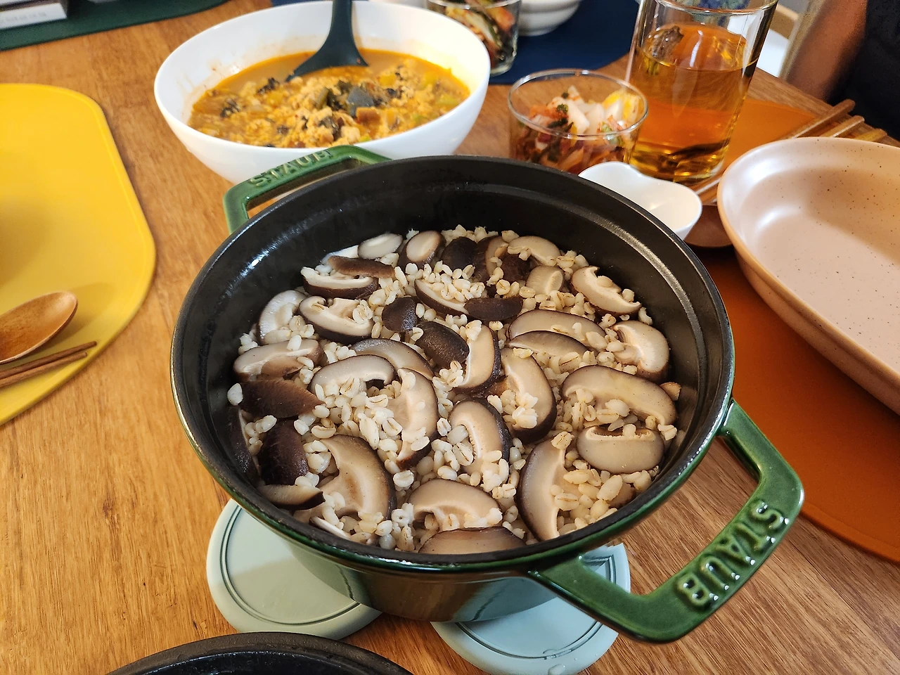 12/18일 친정엄마가 오셨다. 평생 해주는 밥만 먹다가 엄마에게 밀키트가 아닌 손수 지은 집밥을 해드리는 건 처음이라 재료 준비부터 긴장했다. 오늘 저녁밥은 늘보리압맥, 칼집현미 1:1로 2컵. <미니표고버섯 솥밥>으로 지었다.