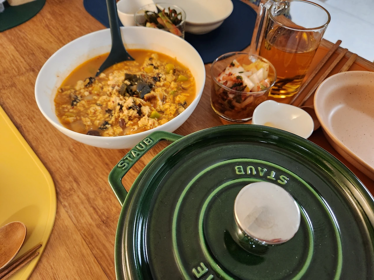 엄마가 진짜 맛있다고 칭찬해 줬다. 칭찬은 딸이 요리하게 한다. 내일 아침은 멸치 솥밥 + 새우 지중해 샐러드다. 오늘 밤 샐러드 재료 마리네이드 해두었다.