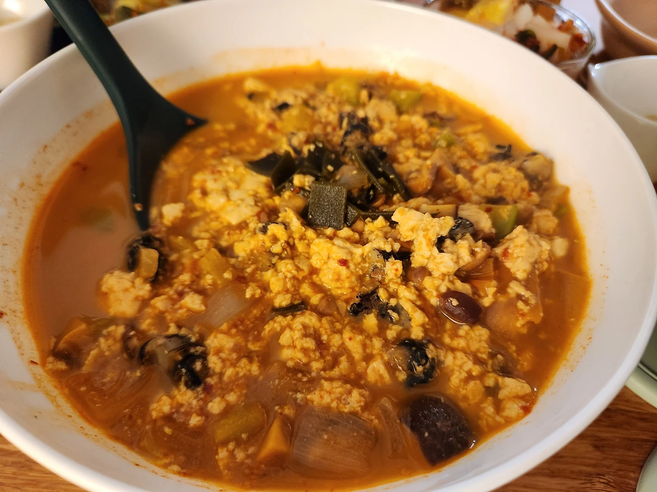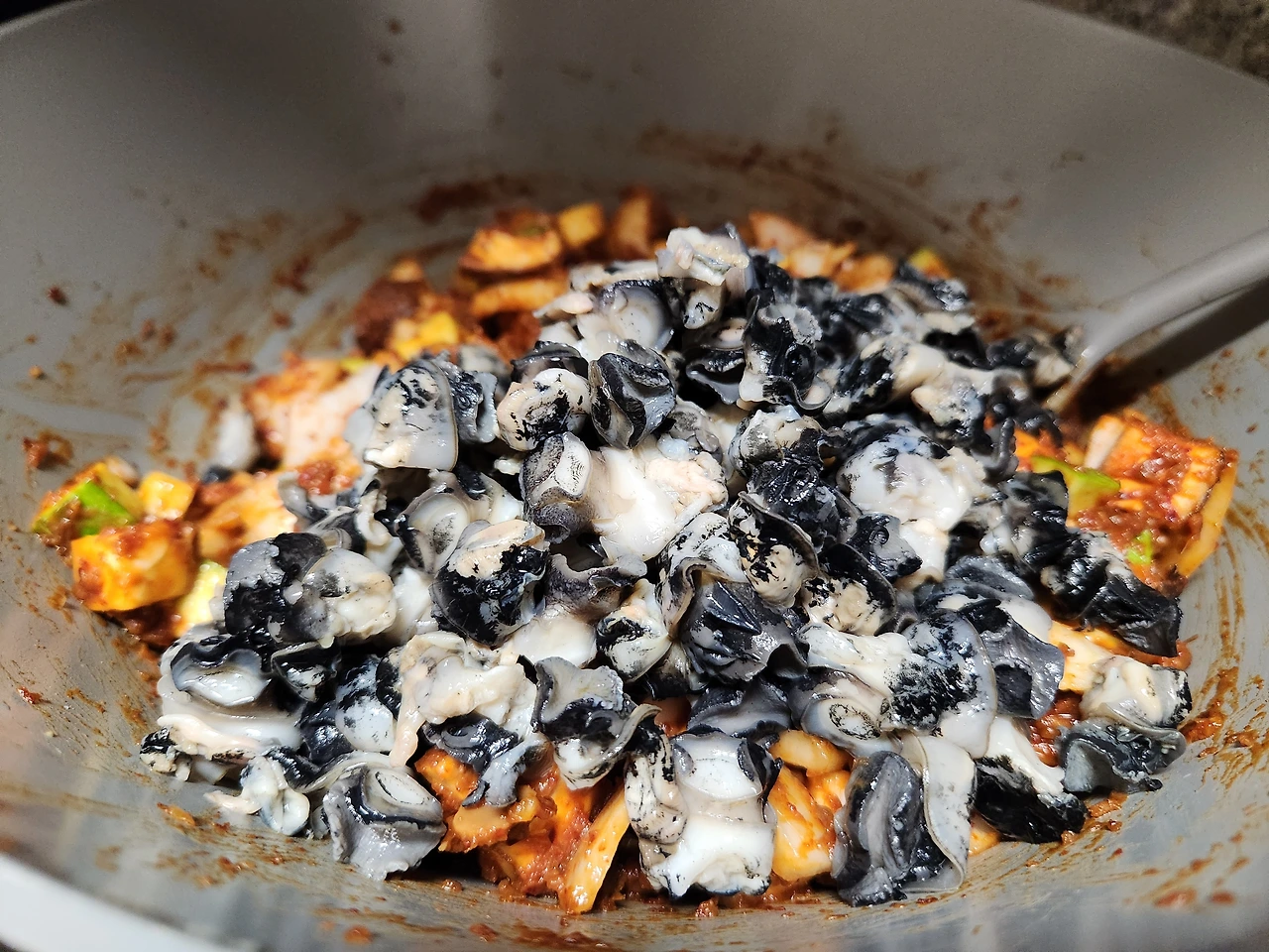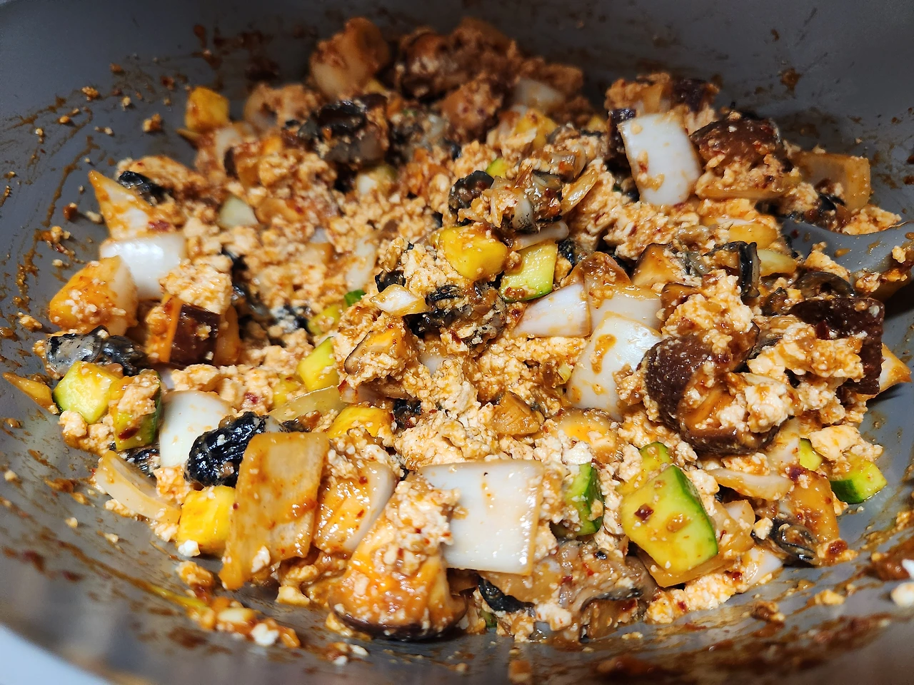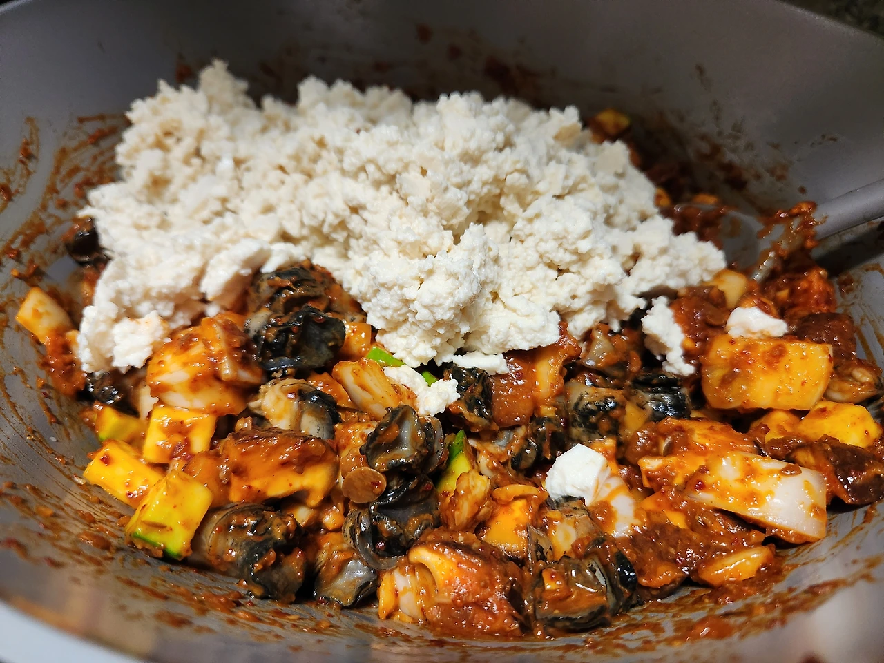 5. 우렁살, 두부를 순차적으로 넣고 볶아준다.