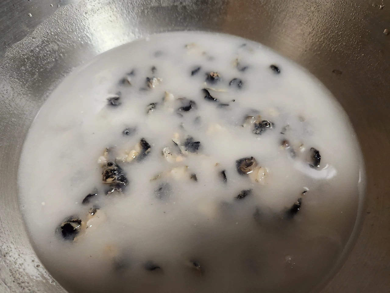 3. 우렁은 밀가루 1T를 넣고 비빈 후 3회 깨끗이 헹궈준다.