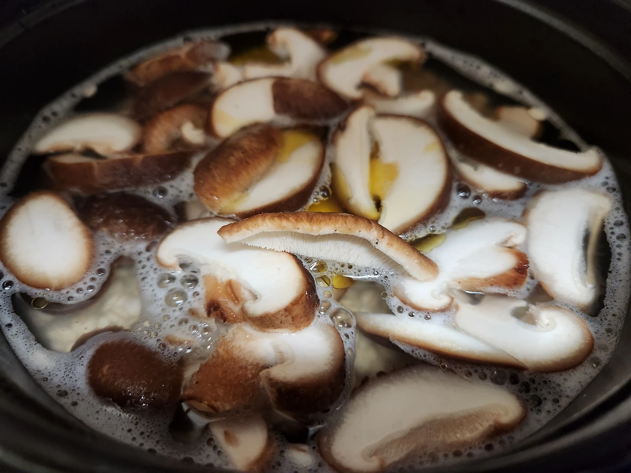 1. 미니표고 솥밥은 표고버섯 6개 편 썰어 준다. 불린 통곡물을 넣고 코인육수 1개, 올리브 오일 1T, 들기름 1T를 넣고 밑간을 한다. 10분 불린 후, 강불 5분 중불 15분 약불 5분 불 끄고 5분 뜸 들인 후 먹는다.