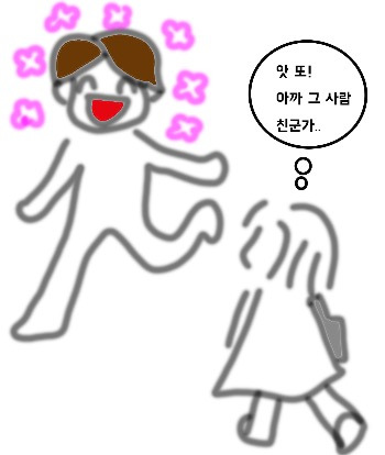 무표정으로 뚜벅뚜벅 걷는 아이가 더 어색하다.