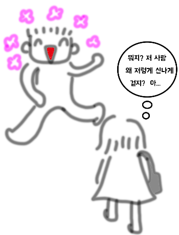 활짝 웃으며 신나게 걸어가는 사람은 일반적으로 정상으로 보이지 않는다.