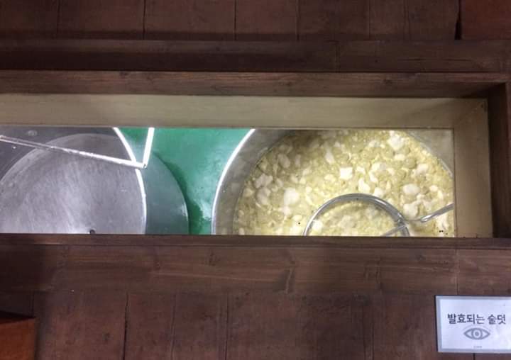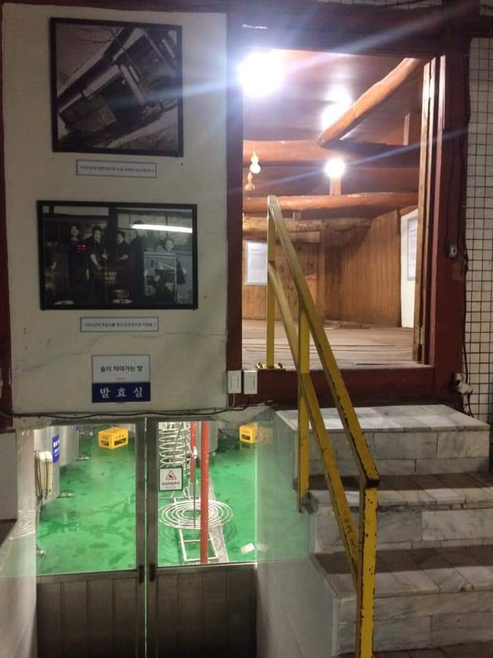 1920년대 가내 주조로 시작한 지금의 양촌 양조장은 1931년 지어진 한옥식 목조 건물이라고 했다. 보통 술을 만드는 특성으로 인해 반 지하에 발효실을 설치하고 2층엔 술밥을 쪄서 식히는 곳을 만든다고 하셨다. 계절에 따른 온도 변화를 차단하기 위해 반 지하에 발효실을 만들었단다. 2층 천정 대들보에 적힌 글을 보니 한자로 소화 6년(1931년) 6월 9일에 지어졌다고 쓰여 있다. 특이하게도 내부에 우물이 하나 있는데 깊게 파놓아서 물을 소중하게 보호하고 있다며 은근 자랑이시다. 농약을 쓰지 않는 논산에서 자란 우렁이 쌀이 술의 주된 원료라고 한다. 2층에서 찐 술밥을 반지하인 발효실로 내려 보내는 곳은 관람객을 위해 유리로 볼 수 있게 해 놓았으니 이마저도 사장님의 여유와 자부심이 전해졌다.
