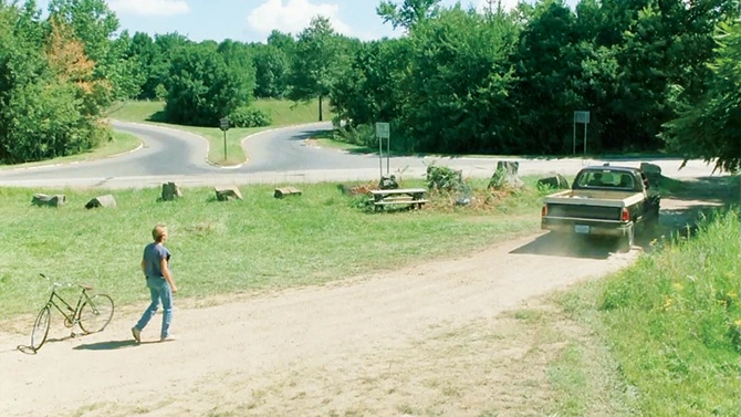 그들은 차로 그의 주변을 돌며 이별을 고한다. 그 너머로 서서히 멀어지는 자동차의 모습은 이 영화의 주제를 완벽하게 시각화한 명장면이다.