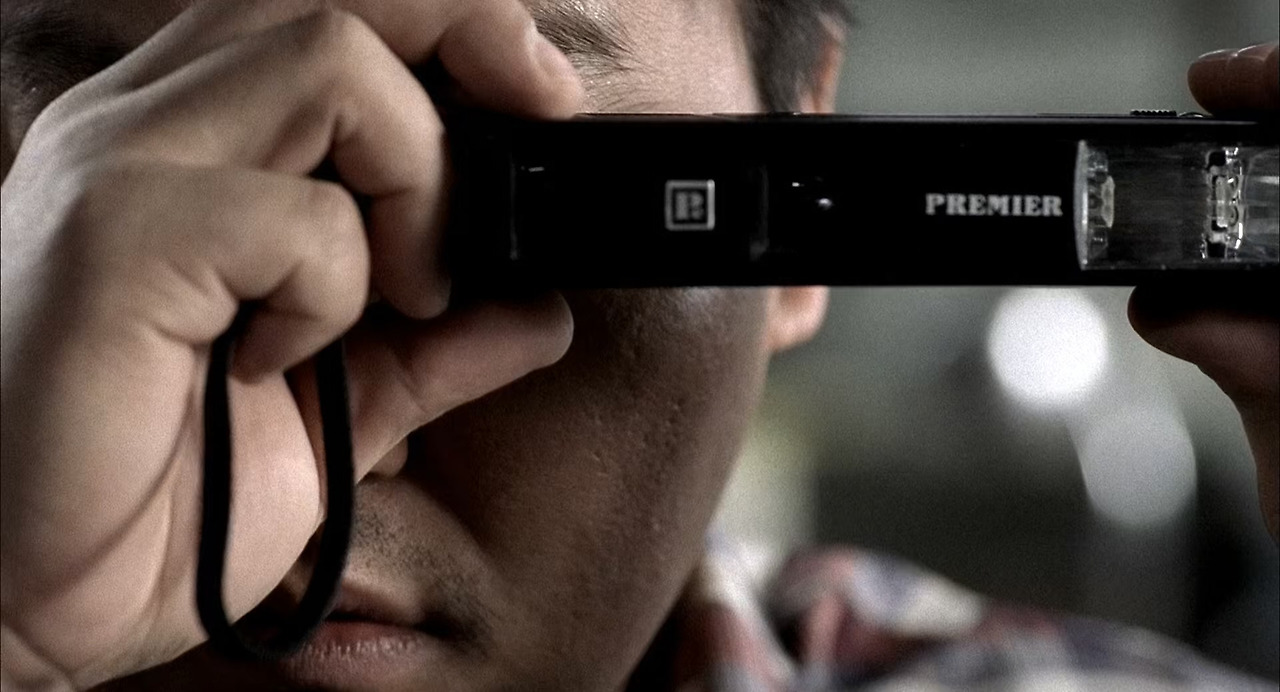 용의자들이 차례로 지나가고 클로즈업으로 카메라를 만지는 박두만의 손이 나타납니다. 이리저리 카메라를 돌려대다가 자신의 향해서 찰칵하고 사진을 찍어버리는 실수를 범하기도 합니다.