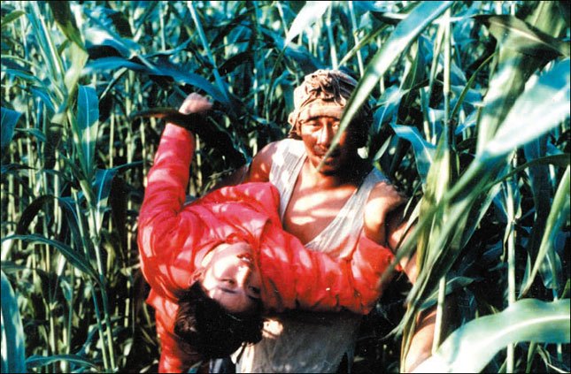 <붉은 수수밭>은 서사보다 이미지가 압도적으로 강렬한 영화다. 장 이모우 감독은 소설의 주제의식을 영상으로 연출해 내는 데 성공하면서 1989년 베를린 영화제에서 금곰상 수상이라는 쾌거까지 이루게 된다. 강렬한 색감과 과감하기까지 한 극적인 미장센은 비극적인 역사의 한 부분을 상징적으로 잘 표현하고 있다.