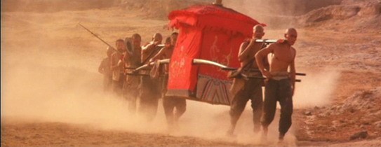 중국에서 행운과 성공을 의미하는 붉은색은 중국인들에게 가장 사랑받는 색이다. 그래서 중요한 행사가 있을 때마다 붉은색으로 장식을 하는 것이 전통인데 영화의 첫 장면, 가마에 타고 있는 추알 또한 머리부터 발끝까지 붉은색으로 치장을 하고 붉은색 가마를 타고 있는 것을 볼 수 있다. 원치 않는 결혼을 하게 된, 이제 겨우 열여덟의 추알의 굳은 얼굴은 가마의 붉은 천에 붉게 물들어 있다. 나귀 한 마리에 팔려가는 자신의 삶이 앞으로 어떻게 이어질지 두렵고 걱정도 되지만 그녀는 펄럭이는 앞가림 막을 조심스럽게 발로 벌려 작열하는 태양 아래, 웃통을 벗은 가마꾼, 붉게 그을린 유이찬아오의 건장한 몸을 호기심 있게 관찰한다. 그녀의 이러한 행동은 그녀가 당돌하고 자신의 욕망에 꽤 솔직한 사람이라는 것을 말해준다.