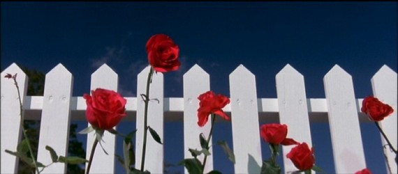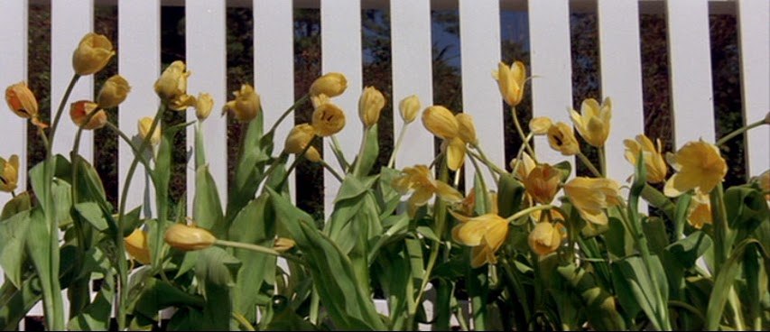 50년대를 연상시키는 달콤한 음악과 함께 cf에서나 볼 법한 밝고 명랑한 이미지들이 펼쳐진다. 파란하늘에 하얀 펜스. 그 앞에 하늘거리는 노란 튤립과 빨간 장미. 소방차에 올라타 손을 흔드는 소방관과 개가 지나가고 평화롭게 정원에 물을 주는 남자와 주변을 뛰노는 개의 모습은 어딘가 부자연스럽고 불안한 기운이 가득하다. 그리고 호스로 정원에 물을 뿌리던 남자가 갑자기 뒷목을 잡고 쓰러진다. 과장된 그의 몸짓과 방향을 잃고 허공에 흩어지는 호스 물줄기에 달려드는 개의 모습은 웃기기까지 하다. 일단은 한 편의 슬랩스틱 코메디 같은 장면 앞에서 웃는다. 앞으로 어떤 이야기가 어떻게 보여 질 지 관객은 예상할 수 없다.