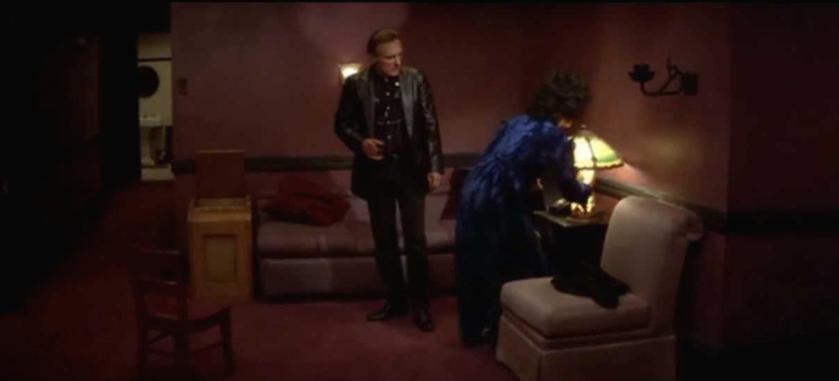 붉고 어두운 도로시의 아파트 거실(여성의 자궁과 피를 연상시키는)은 사람이 사는 곳이라고 하기엔 가구 배치도 엉성하고 공간은 비어있다. 그 곳은 침범 당한 여성의 공간이자 가해자들의 욕망이 실현되는 공간이며 범죄와 폭력의 마침표를 찍는 공간이다.