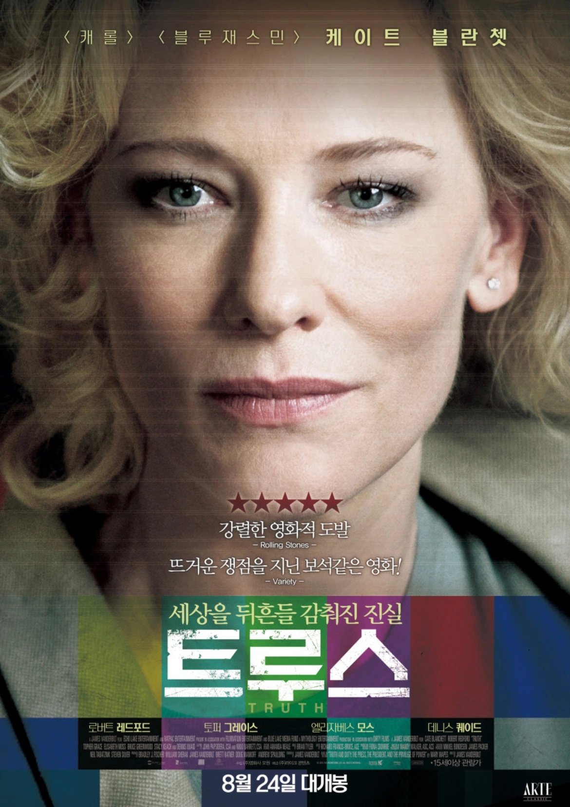 <트루스>는 메리 메이프스(케이트 블란쳇)라는 베테랑 프로듀서의 이야기를 다룬 영화다. 2004년 당시 미 전역을 놀라게 했던 실화이며 실존 인물 메리 메이프스의 회고록을 바탕으로 제작됐다. 방송국 간판 앵커 댄 래더(로버트 레드포드)를 비롯해 4-5명가량으로 구성된 '60분' 팀은 미국 부시 대통령의 군 복무 비리 의혹을 제기, 심층 보도 방송을 한다. 하지만 증거를 찾고 취재하고, 이를 방송으로 내보내는 과정에서 예상치 못한 어려움이 이들을 찾아온다. 방송을 막으며 "증거는 조작됐고 해당 보도는 오보"라는 주장에 메이프스 일행의 끝까지 맞서며 치열하게 싸운다. 케이트 블란쳇과 로버트 레드포드의 명연기를 볼 수 있는 건 덤이다.
