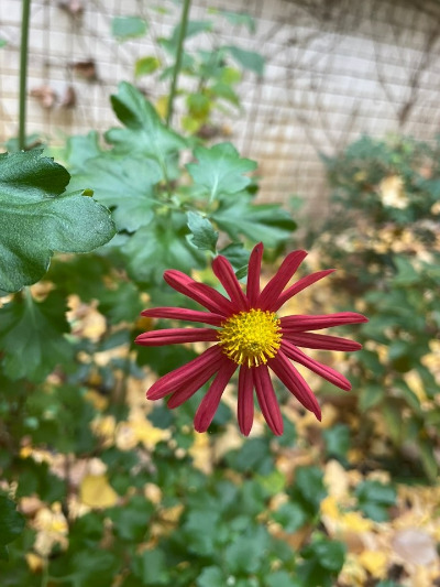 이 혹독한 기후와 가드너의 방치에도 불구하고 아직 살아남은 식물들이 많았다. 그 중에서 빨간 꽃을 피운 구절초는 정말 의외였다. 작년 여름, 빨간 색, 흰 색 꽃을 피운다는 야생화 구절초 작은 모종 두 개를 라일락 나무 옆에 심었었다. 나란히 심은 두 개 중에 흰꽃을 피우리라 기대했던 구절초는 올해 초 완전히 말라붙어 죽어버렸다. 그래서 하나 남은 구절초도 정원의 흙과 안맞아 곧 죽을 수도 있겠다 생각하여 별 기대없이 방치했는데 올해 들어 놀랄만한 번식력으로 개체 수를 늘려갔다. 그런데 가을이 와도 줄기에 무성한 잎파리를 뻗어가며 쭉쭉 자랄 뿐, 꽃이 필 기미가 보이지 않았다. 점점 멀대같이 키가 크게 자라면서 바람에 흔들리고 자꾸만 쓰러지길래 줄기가 꺾일까봐 지지대를 해서 묶어주었다. 그런데 가드너인 친구와 얼마 전에 전화통화를 하다가 구절초가 개체수를 늘리면서 키만 커간다고 그래서 쓰러지지 않도록 묶어주었다고 말했더니 깜짝 놀라며 구절초는 비스듬히 누워서 마디를 꺾어가며 뻗어가는 식물이라며 당장 묶은 걸 다 풀어주라고 했다. 역시나 또 나의 무지함 때문에 구절초는 뻗어가지 못하고 키만 키우고 있었던 것이다.