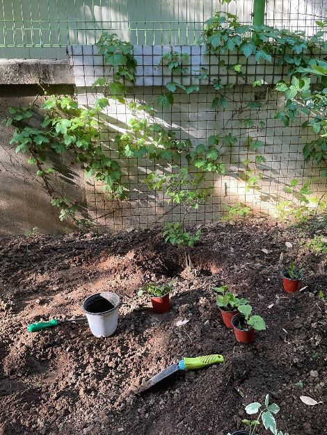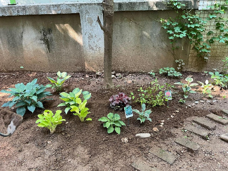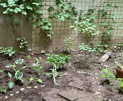 얼마 후 친구는 커뮤니티 친구들과 함께 가꾸는 공동 정원에서 음지에서 잘 자라는 아기 상태의 라일락 나무와 수국 같은 식물들을 몇 종류 가져왔고 나와 과천 농장에 같이 가서 호스타 몇 종류를 골고루 구해왔다. 올해 하나씩 심어보고 내년까지 살아남는 종을 다시 더 심으면 될 것 같다고 말했다. 햇빛이 부족해 꽃이 화려한 정원으로 가꾸긴 힘드니 대신 잎사귀가 화려한 (다양한) 음지식물들을 골고루 심고 낡은 벽과 담쟁이를 배경으로 빈티지한 음지정원으로 컨셉을 잡는게 어떠냐고 조언했다.