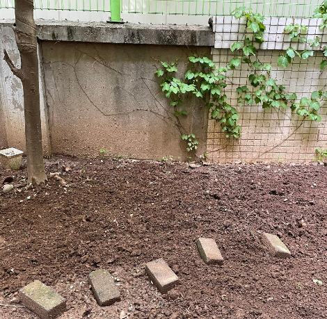 나무 세 그루 외에는 넓은 흙바닥엔 은행열매가 싹을 틔운 새싹과 잡초들이 듬성듬성 있을 뿐 황무지인 땅이었다. 땅을 파보니 바싹 말라있었다. 이 화단을 어찌할꼬. 내가 과연 뭘 할 수 있을까. 막막한 마음에 이 집에 살던 지인에게 전화해서 이 공간에 대해 물어보았다. 지인은 이 화단에 몇 년 간 여러 종류의 식물들을 심어봤지만 단 한 개의 식물도 성공하지 못하고 모두 시들어 죽었다고 했다. 그래서 식물 키우기는 애초에 포기하고 그저 아이들이 뛰노는 공간으로만 이용했다고 말했다.