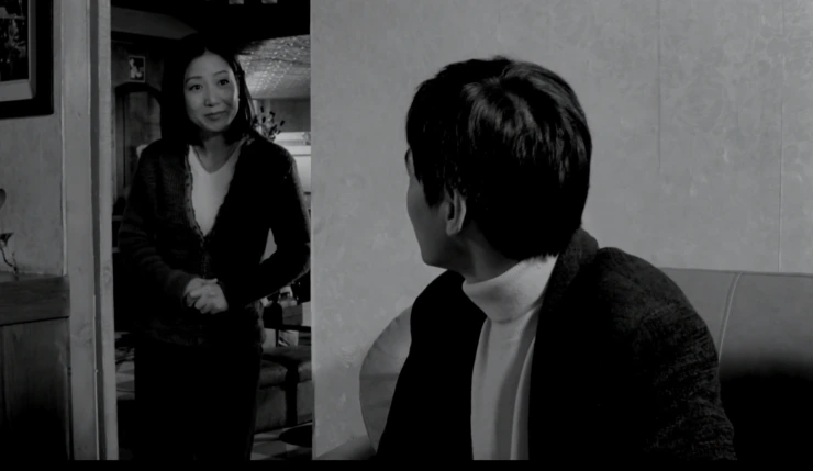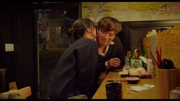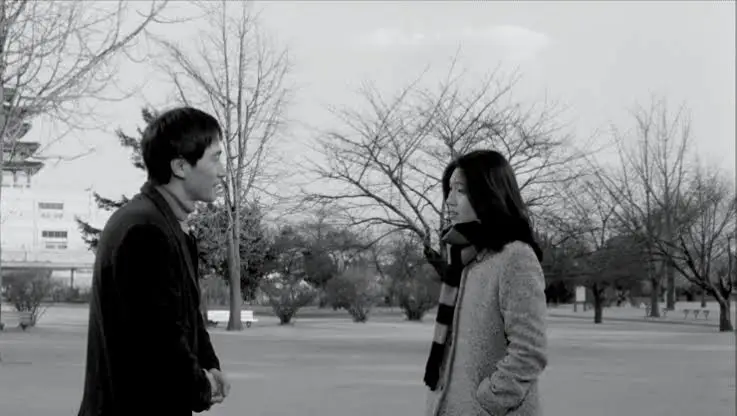 두 남녀는 꼬리잡기 하듯 내부와 외부를 왔다 갔다 한다. 그렇지만 ‘안’으로 들어올수록 파국이다. 특히 1장의 카페에서 감독에게 자신을 자꾸만 설명하고 말하는 것은 김민희뿐이다. 포커스는 주로 그녀와 변화하는 그녀의 표정에 맞추어져 있다. 관객은 주로 소리와 외화면에 대한 유추로 정재영을 상상할 수 있을 뿐인데 ‘대단하십니다’, ‘알 것 같아요’ ‘참 순수하세요’와 같은 무미한 리액션은 주로 홍상수 감독의 전작에서 수작을 부릴 때 쓰는 익숙한 대사들이다. 이때의 칭찬들은 일상의 회화라기보다는 다분히 연극적이어서 더욱 거짓말 같다. 그러나 그럴듯하게 (자고 싶다는) 진심 반 거짓 반의 티키타카를 잘 이어가던 정재영은 진짜 친구가 없다는 김민희의 말에 말문이 막히고 담배를 구실로 ‘밖’으로 나간다. 김민희는 [시인과 농부]라는 새로운 ‘안’으로 (반억지로) 다시 정재영을 끌어들이지만, 그가 1) 유부남이라는 사실과 2) 작품에 대한 칭찬의 말이 감독이 항상 입에 붙이고 다니던 말이라는 사실을 두 여자에게 각각 듣고 어딘가 더 ‘안’으로 들어가 버린다. ‘나 갈까요? 정말 가요?’ ‘그냥 가세요.’라는 말이 교차하고 그 둘은 아마도 영원히 만나지 못하게 된다.