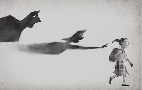 그렇게 멍하니 일상생활을 이어가던 중, 습관처럼 빨래를 하던 아내가 빨랫감 속에서 작은 티셔츠를 발견하며 관객은 이 부부를 내리누르는 무기력의 원인에 대해 차츰 깨닫게 된다. 문을 닫은 채 출입을 '금하던' 어느 방으로 간 부부는 작은 침대 위에 함께 앉아 그들의 어린 딸을 추억한다. 그들의 영혼, 혹은 과거를 상징하는 검은 존재들은 딸을 상징하는 존재와 함께 시공간을 날아다니며 세 가족의 행복했던 시간들을 되짚는다. 그러나 사랑만이 가득했던 그 시간들은 어린 딸의 마지막 등교에 대한 기억으로 참혹하게 막을 내린다. 학교로 씩씩하게 걸어가는 딸을 부모의 ‘영혼’은 어떻게든 막아서기 위해 애를 쓰지만, 아이는 결국 국기가 걸린 학교 안으로 들어선다. 잔인한 장면이 직접적으로 표현되진 않으나 닫힌 문 너머로 들리는 총소리, 딸에게서 온 마지막 문자의 내용으로 그 후의 상황은 충분히 유추된다.