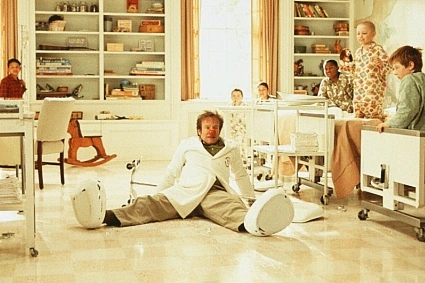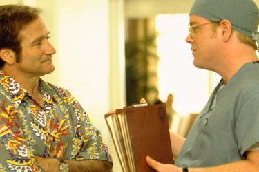 또한 패치가 사실상 죽음만 기다리고 있다고 할 병원 안의 환자들에게 창의적인 방법으로 '기쁨'을 선물하는 장면들은 상당히 아름답다. 마지막으로 사파리 여행을 소원하던 모험가 출신 노인에게는 풍선으로 만든 동물들을 고무줄 총으로 마음껏 쏠 수 있도록 해 주고, 암 투병 과정에서 살 날이 얼마 남지 않아 성미가 고약해진 환자에게는 오히려 '죽음'에 대한 여러 동의어를 제시하며 곧 다가올 생명의 끝을 직시함으로 마음의 문을 열게 하는 등, 사람과 사람이 서로를 인격체로 존중하며 소통할 때 일어날 '기적'의 가능성에 대해 많은 생각을 할 수 있도록 실마리를 제공해 주는 것도 사실이다.