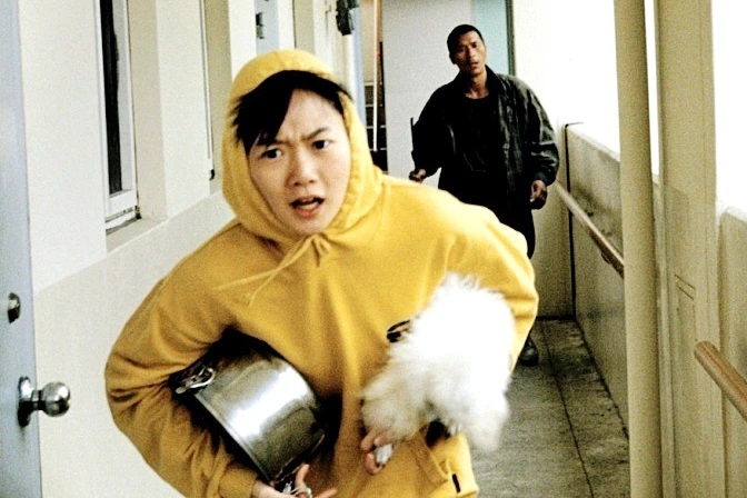 여기에서 흥미로운 - 사실 씁쓸한 - 점은 그가 처음으로 납치한 강아지는 짖지도 못하는 아이였을 뿐더러 두 번째로 납치했던 ‘짖는’ 강아지 또한 그에게 직접적 위해를 가한 적이 없다는 사실이다(이 영화의 영어 제목이 “Barking Dogs Never Bite”라는 점도 재미있다. "짖는 개는 물지 않는다"는, 그러니까 시끄러운 상대일수록 사실 위험하지는 않다는 의미의 표현이니까). 영화를 보는 내내 “Kick the dog”이라는 영어 속담도 생각났는데, 이는 자신보다 힘센 사람에게 괴롭힘을 당한 인물이 그 사람 대신 강아지를 걷어찬다는, 그러니까 자신의 분노와 억울함을 죄 없는 약자에게 푸는 행위를 빗댄 말이다. 정확히 이 말처럼 윤주는 실제로 자신에게 부당한 대우를 했던 학장, 또한 자신을 만만하게 대하는 아내에겐 그들이 상대적 ‘강자’라는 이유로 대들지 못하고, 그 대신 자기보다 훨씬 약한 입장에 있는 강아지들에게 ‘화풀이’를 한다. 그로 인해 강아지뿐 아니라 강아지의 주인들도 해를 입게 되고, 심지어 두 번째 강아지의 주인인 할머니는 강아지를 잃은 충격에 쓰러졌다가 결국 숨을 거두기까지 한다. 제도의 부패와 불합리함에 억눌린, 힘 없는 ‘피해자’였던 윤주가 스스로 ‘가해자’의 위치로 자리바꿈하고 있는 셈이다.