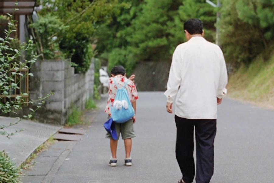 하지만 제목에서도 유추할 수 있듯 이 영화의 주인공은 사실 마사오가 아닌 기쿠지로다. 영화 안에서는 거의 끝날 때가 되어서야 기쿠지로가 마사오의 성이 아니라 아저씨의 이름이라는 사실이 ‘밝혀지며’ 약간의 반전이 일어나는 셈인데, 엄마를 찾는 이 여정의 주체는 마사오지만 영화를 관통하는 성장극의 중심은 기쿠지로인 것이다. 그런 맥락으로 이번에 영화를 다시 보며 인상 깊었던 대사가 있었는데, 지나가는 차들이 태워 주지 않아 정류장에서 계속 시간을 보내던 중, 태어나서 한 번도 엄마를 본 적 없다는 마사오의 말에 갑자기 진지해진 기쿠지로가 자기 무릎을 베고 잠든 아이를 내려다보며 “나랑 똑같구나” 하고 말하는 대목이다. 착하고 소심한 소년 마사오와 민폐와 주책을 탑재한 중년 기쿠지로에게 접점은 없어 보이지만 사실 둘은 비슷하게 ‘소외된’ 사람들이다. 영화의 초반부, 할 일이 없어 평소처럼 축구부 연습을 하려 학교 운동장에 온 아이에게 코치 선생님이 나름 친절하게 방학이니 바닷가라도 놀러가라, 하고 말하는데, 오히려 이 말을 통해 정형화된 ‘가족’에, 그러니까 사회적 안전장치와 제도적 안정성에 속하지 못한 마사오의 현실이 두드러진다. 누군가는 당연히 여기는 것을 이 아이는 누리지 못하고 있는 셈이니까. 기쿠지로 또한 영화의 초반부, 아내와 나누는 패륜적(?) 만담을 통해 엄마의 보살핌을 받지 못하고 자랐다는 사실이 암시된다. 전형적인 ‘가족’의, 더 정확히는 사회적으로 요구되고 인정되는 규격 밖에서 지내 온 그가 마사오를 보며 "나랑 같다"고 말하는 것을 듣고 있으면 기쿠지로 안에 존재하는, 마사오 또래의 어린아이가 보이는 것도 같다.