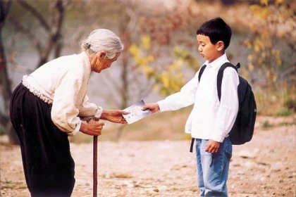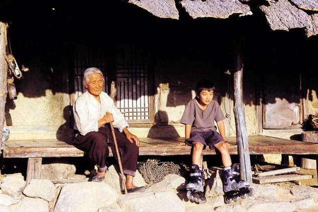 몸에 꽉 끼는 옷에 굽 높은 구두를 신고 산골에 온 젊은 엄마와 스팸을 먹을거리로, 게임기를 장난감으로 가지고 온 어린 아들의 모습으로 등장하는 이들 모자는, 산골의 흙집에서 혼자 살고 계신 할머니와는 너무도 대조되는 외형과 분위기를 보여 줍니다. 전작인 “미술관 옆 동물원”에 이어 이 작품에서도 “이질적인 두 존재를 같은 공간 안에 ‘강제로’ 병치시키는 플롯”을 사용하고 있다고 평가 받은 이정향 감독이지만, 이 영화가 갖는 조금 다른 특성이라면 할머니와 어린 손자인 두 사람 모두가 혼자의 힘으로 살아가기 어려운 무력하고 연약한 ‘마이너리티’로서의 한계점을 가지고 있다는 점일 것입니다.