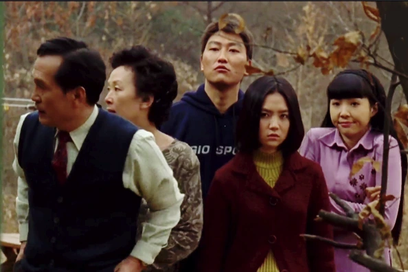 꽤 많은 인물이 등장하는 이 영화의 주인공들은, 아버지 “강대구”와 어머니 “정순임,” 큰아들 “강영민”과 큰딸 “강미수,” 작은딸(막내) “강미나” 등 부모와 세 자녀 외에, 대구의 동생이자 자녀들의 삼촌으로 이들과 함께 살고 있는 “강창구”까지 포함된 여섯 명의 가족입니다. 지난 회에 포스팅한 “오션스 일레븐”이 “앙상블 캐스트(ensemble cast)” 형식임을 간략히 언급했었지만, 이 영화 역시 그 여섯 배우들의 배역이 거의 비슷한 비중으로 분배된, 유사한 구조를 택한 작품이라고 볼 수 있습니다. 시간적 배경은 1997년 일어난 IMF 외환 위기 당시의 상황으로, 경제적 문제로 인해 외딴 산속에서 산장을 시작한 이들 가족은 개업 후에도 한참이 지나고서야 첫 손님을 받게 됩니다. 어딘가 암울하고 음침한 느낌을 주는 “안개 산장”이라는 이름 외에도, 함께 이곳을 운영하고 있는 가족들 모두가 평범하고 ‘정상’적인 사람들과 뭔가 다른 듯한 분위기를 갖고 있다는 사실 때문에 산장은 ‘이상’하고도 괴이한 장소라는 인상을 줍니다.