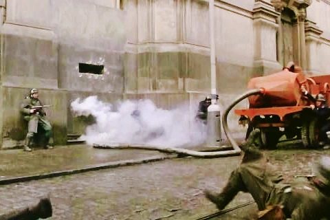 속수무책의 상황에서 시간이 흐르며 어느덧 성탄 전야가 되는데, 하이드리히를 유럽 지역 나치 제국 식민지의 총책임자로 임명한 히틀러가 그를 다시 베를린으로 불러들이자 그 이전에 임무를 완수하려는 대원들은 급박해진 상황으로 적잖이 당황하게 됩니다. 이번에는 실수 없이 완벽하게 일을 처리할 방안을 강구하던 그들이 결국 결정한 거사 방식은 큰 위험을 무릅써야만 가능한, 늘 같은 시간에 같은 길로 출근하는 하이드리히를 아침 출근길의 인파 많은 대로에서 공격하는 작전이었습니다. 첫 번째 시도 때와 마찬가지로 직접 임무에 투입된 얀과 요제프는 하이드리히의 차가 속도를 줄일 커브 길에서 그가 오기를 기다리고, 예상 대로 속도를 줄인 차가 커브 구간에 들어섰을 때 차 앞을 가로막으며 뛰어든 요제프가 하이드리히에게로 급히 총구를 향하지만 허술한 스텐 기관단총이 격발되지 않자 반대편에서 대기하던 얀이 그를 향해 수류탄을 던집니다.