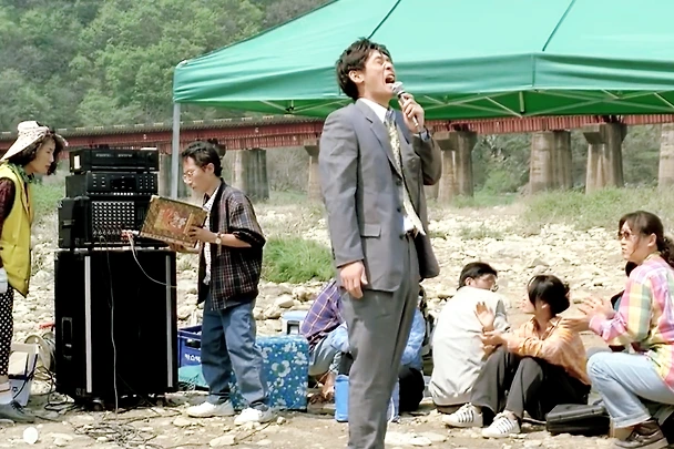 “야유회”라는 제목의 “쳅터(Chapter) 1”은 영화 순서로는 시작 부분이지만 이 영화의 내용상으로는 – 위에서 말했듯 – 이야기가 마무리되는 끝부분으로, 1999년 봄 “가리봉 봉우회”의 모임에 느닷없이 나타난 주인공 영호가 오랜만에 모인 그들의 유흥을 쑥대밭으로 만드는 장면이자 영호 자신의 삶’이 마침표를 찍는 장면이기도 합니다. 노래방 기계의 마이크를 빼앗아 난동 수준으로 소리 지르고 춤을 추며 분위기를 망쳐 놓던 그가 갑자기 기찻길 선로 위에 올라서서 “나 다시 돌아갈래!”를 절규하며 스스로 목숨을 끊는 참혹한 모습을 마주할 때, 너무도 갑작스럽고 영문을 알 수 없는 그 상황이 불러오는 당혹감과 비통함은 영호의 친구들뿐 아니라 관객들 모두의 몫이 되고 맙니다.
