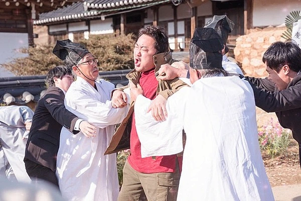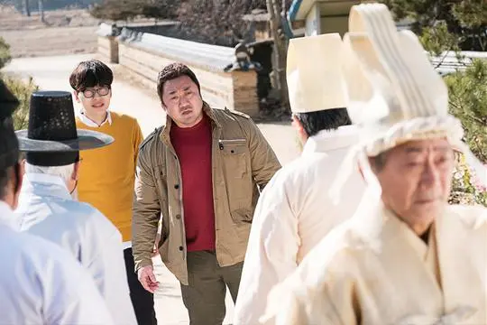 일단 영화에 관해 가장 먼저 하고 싶은 말은 이 작품이 굉장히(적어도 개인적 취향으로는) ‘웃기다’는 점이다. 나는 영화나 드라마, 책 같은 매체 안에서의 유머에 대해서는 상당히 엄격한 편이지만 - 다만 실제 삶에서는 웃음버튼이 지나치게 쉽게 눌린다. 스스로도 이해되지 않는 괴리이긴 하나 뭐 원만한 사회생활을 위한 축복인 것으로 납득하고 넘어가겠다 - 이번에 작품을 다시 보는 동안 정말 여러 번 소리내어 웃었다. 물론 여기에는 배우들의 기여도가 상당한데, 저렇게 몸집이 크고 위협적으로 생긴 사람도 귀여울 수 있다는 사실을 가르쳐 준 "마블리" 마동석과 표정 변화 없이 툭툭 던지는 코믹 연기로 극한의 효율을 뽑아 내는 이동휘의 케미와 진가가 이 영화에서 특히 잘 드러난다. [극한직업]에서도 보여 줬듯 망가짐을 두려워하지 않는 이하늬의 능청스런 매력도 마찬가지이고 말이다. 그 외에도 가문 전통의 계승을 명예로 생각하는 사촌동생 "미봉" 역할의 조우진이나 조신한 척 와일드한 그의 아내를 연기한 송상은, 당숙 역을 맡은 베테랑 배우 송영창과 가문의 일원임을 숨긴 어설픈 승려 역의(요즘 특히 핫한) 허성태 등등 모든 조연 배우들이 자신감 있고 맛깔나게 각자의 캐릭터를 표현하며 빈틈없는 연기 열전을 펼쳐 보인다.