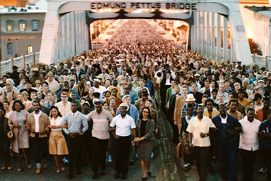 형식상의 투표권은 있지만 실제 선거인 등록이 거부 당하는 현실에 처해 있던 당시의 흑인들은 지금으로부터 정확히 60년 전인 1965년 3월 7일, 선거 차별 철폐를 외치며 셀마의 에드먼드 페터스 다리(Edmund Pettus Bridge)를 지나는 행진을 시도하는데, 이 과정에서 앨라배마 주 경찰대가 끔찍하고도 무자비한 무력 진압을 자행하면서 이 사건은 미국 민권 운동사에 “피의 일요일(Bloody Sunday)”이라는 수치스러운 이름으로 남게 됩니다. 이 같은 충격적 사건을 소재로, 그리고 마틴 루터 킹에 관한 첫 영화로 만들어진 이 작품은, 미국 흑인 참정권 운동의 주요 전환점이 된 역사적 사건에 대한 관심으로 8년이라는 긴 시간을 준비했던 “노예 12년(Twelve Years a Slave)”의 제작자 디디 가드너(Dede Gardner)와 제레미 클라이너(Jeremy Kleiner) 등의 성실한 제작, “미들 오브 노웨어(Middle of Nowhere)”의 감독인 에이바 마리 듀버네이(Ava Marie DuVernay)의 뛰어난 연출로 세상에 나올 수 있었습니다.