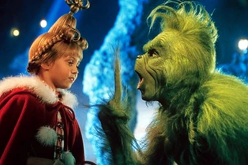 물론 짐 캐리의 활약 또한 빼놓을 수 없다. 개인적으로 이 배우의 정신없는, 혹은 정신 나간 듯한 “manic” 코미디 스타일을 항상 좋아하진 않지만 그가 작품에 쏟아붓는 열정과 에너지만큼은 언제나 존경스러운데, 특히 이 작품의 경우 그가 아니었다면 누가 이 "그린치" 역할을 감당할 수 있었을지 상상도 되지 않는다. 이 영화 속의 그린치는 알고 보면 슬픈 과거와 사연을 가진, 공감을 자아내는(sympathetic) 대상이자 폭발적 장난기와 악의를 뿜어내는 파괴적 존재이기도 한 만큼, 이런 캐릭터를 연기하며 균형을 맞추는 것은 결코 쉬운 일일 수 없다. 물론 어린이용 영화이다 보니 어느 정도의 ‘오버 액션’이 허용된다는 점을 감안하더라도, 이 작품 속의 짐 캐리는 마치 플레이도처럼 유연한 얼굴 근육을 사용해 극과 극의 감정을 표정으로 구현하며 심술궂지만 사랑스러운 그린치로서 극의 중심을 단단히 잡아 준다.