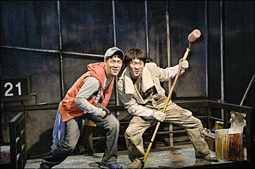 일감이 없어 어렵게 지내다 간신히 찾은 일인 빌딩의 옥탑 광고 - 양주 광고인 - 간판을 그리던 그들 둘은 춥고 배고프고 위험한 작업을 참고 버티다 “해가 길어졌으니 늦게까지 일하라”는 지시를 받고 ‘열이 받아’ 간판 설치물 꼭대기까지 올라가 앉았다가 각자의 처지에 대해 솔직한 대화를 나누게 됩니다. 부잣집 딸인 지나가 부모님이 권하는 상대와의 약혼을 결정하며 헤어지게 되었음을 고백한 칠수와, 회갑을 앞두고 가족들의 요청으로 힘들게 얻어 낸 3일간의 가석방조차 아버지 스스로 거부했다는 소식을 들은 만수의 답답한 형편 말이지요. 앉아 있던 자리에서 갑자기 벌떡 일어나 “서울에 있는 높은 놈, 배운 놈, 잘난 놈, 있는 놈 모두 다 내 얘기를 들어 봐라. 나도 말 좀 해야겠다”면서 “높은 곳에 있을 때 큰소리 좀 쳐 보자"고 장난 삼아 소리를 지르기 시작한 만수와 그에 동조한 칠수는, 길을 지나다 우연히 그들의 모습(높은 곳에 올라서서 손을 휘저으며 무언가를 외쳐 대는)을 올려다본 행인들로부터 자신의 뜻을 관철시키기 위해 고공농성을 벌이고 있는 사람들로 오인 받게 됩니다.