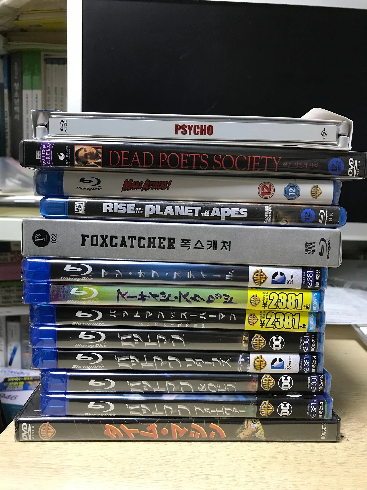 마침 아빠 직장 근처에 [알라딘 중고매장 합정점]이 있어서, 매일 점심 먹고 출근 도장 찍다시피 들러 뭔가 살만한게 있으면 하나 둘 집어들고 왔지. 의외로, 이제 블루레이 시대가 되어서, DVD는 똥값이 되었어. 그래서 DVD 중에는 여기 중고 매장에서 1만원 안쪽, 5천원 안쪽으로 구매한게 많아. 뭐 영화에 따라 블루레이 출시를 안하는 것들도 있어서, 일본 아마존에서 사거나 하는 수 없이 DVD를 산 것도 몇 개 있어. 음질이나 화질때문에, DVD는 사양길에 들어섰다지만, 때론 블루레이의 쨍한 '화면'과 웅장하고 날카롭게 잘 정리된 '음향'보다, 픽셀들이 자글자글 거리는 거친 DVD의 그것들이 뭔가 필름시대 영화를 보는 것같아서 더 좋을 때가 있거든. 일본 드라마나 장르 영화들을 볼 때 특히 그렇다고 할까? 내구성이 어떨지 모르겠지만, 가성비면에서 DVD가 좋은 경우도 있어.