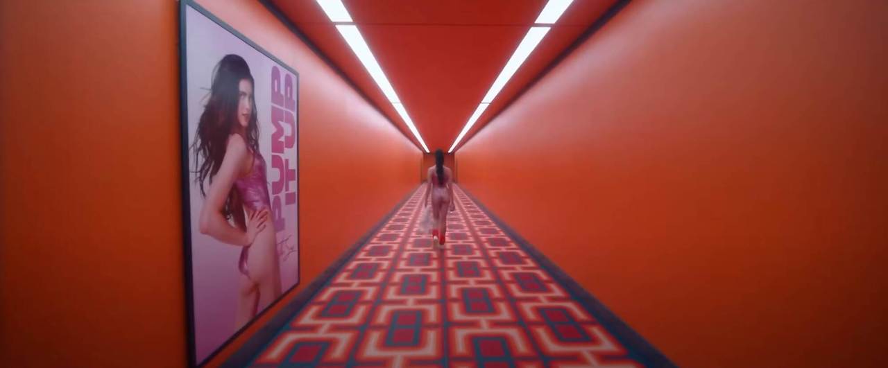 결말부가 아쉬운 다른 한 가지 이유는 지나친 오마주에서 기인한다. 선혈이 낭자하는 엔딩 시퀀스에서 <서브스턴스>는 스탠리 큐브릭 감독의 <샤이닝>을 오마주한다. 위대한 작품을 오마주하는 것 자체는 문제 될 것이 없으나 그 방식엔 고개가 갸웃거려진다. 작품이 지향하는 방향성이 있고, 그 방향성에 부합하는 작품을 차용하는 것이 적절한 오마주라고 할 수 있다. 그러나 본 작은 오마주를 하기 위해, 오직 오마주를 하고 싶어서 작품의 방향성과 지향점을 <샤이닝>에 고정시킨 채 나아간다. 이와 같은 오마주 방식엔 다소 아쉬움이 느껴진다.