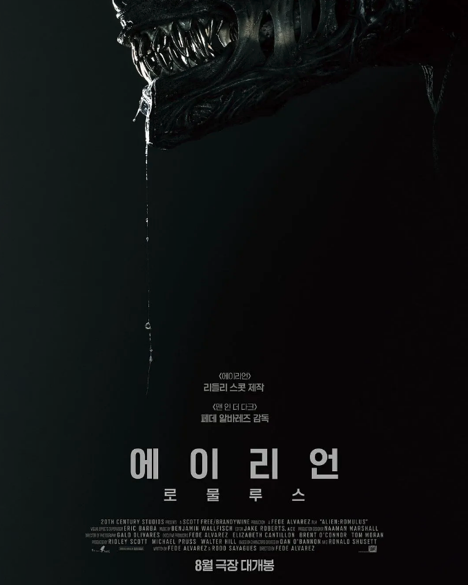 월트디즈니컴퍼니코리아는 <에이리언: 로물루스>를 오는 8월에 선보인다고 밝혔습니다.<맨 인 더 다크>를 연출했던 페데 알바레즈 감독이 맡았으며 감독에 의하면 “전작을 봤든 보지 않았든 이 작품은 얼마든지 즐길 수 있다”고 언급했습니다.