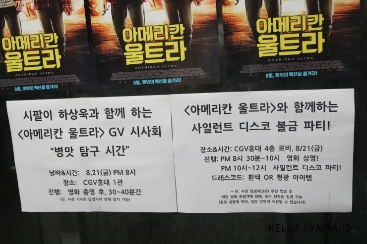 코로나19 이전 '불금'의 성지였던 홍대의 한 영화관에서 펼쳐진 이 시사회는 '상영관'이 아닌 극장 '로비'에서 진행되었습니다. 사실, 상영과 이벤트가 분리된 특별 시사였지만, 극장 관객에게 색다른 즐거움을 안겨주었다는 데 의의가 있다고 생각합니다. 화려한 조명 아래 그 누구보다 빛날 수 있도록 드레스코드까지 지정해준 시사회이기 때문에 고성이 난무했을 거라 생각하셨다면 큰 오산입니다. 이 파티 시사회는 '사일런트' 시사회로, 헤드셋을 쓴 채 각자가 파티의 주인공이 된 느낌으로 진행되었다고 하는데요. B급 유머를 그 누구보다 잘 소화해내는 '제시 아이젠버그'와 "SNL" 덕분에 개그가 가능하다는 걸 보여준 '크리스틴 스튜어트'가 주연인 병맛 영화에 걸맞는 시사였던 것 같습니다.