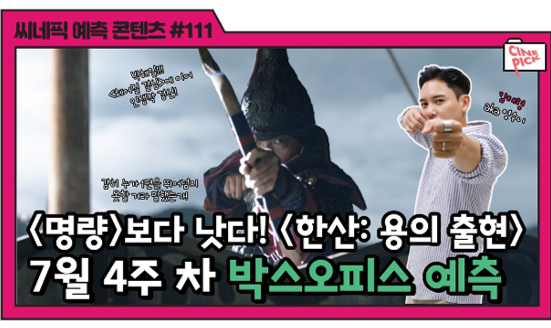 ▶ 씨네픽의 이번 주 111회 예측 이벤트는 7월 둘째 주 주말 순위 예측 이벤트입니다. 씨네픽 참가자분들이 예측해주신 7월 2주 차 박스오피스 순위의 결과는 어땠는지 다 같이 확인해보도록 하겠습니다!