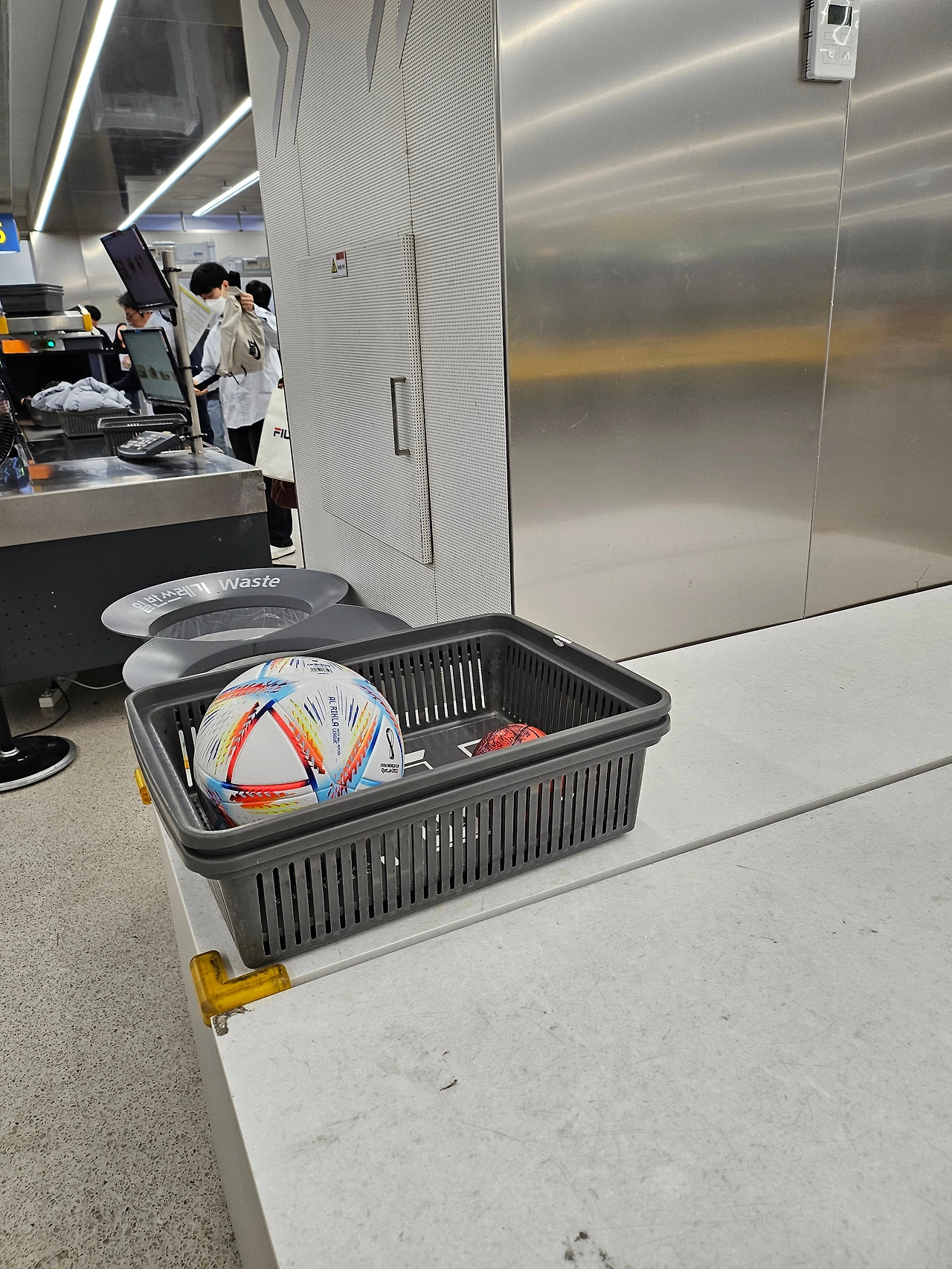 첫 번째 화근은 아들의 축구공. 기어이 축구공을 가져 간다길래 찾아보니 위탁수하물만 아니면 되네? 에휴 그래 배낭에 넣어 메고 가라 했는데 웬걸. 수하물 엑스레이 검사에서 잡히고 말았다.