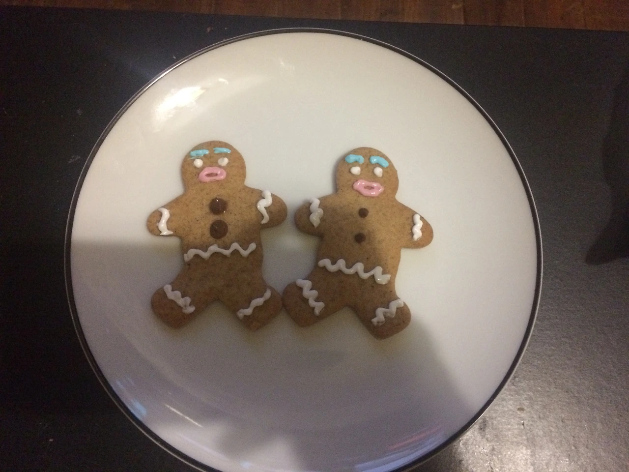 “자기야, 자, 여기 이 진저브레드 단추가 도안보다 더 크게 짜였잖아, 균일하게 짜야지”