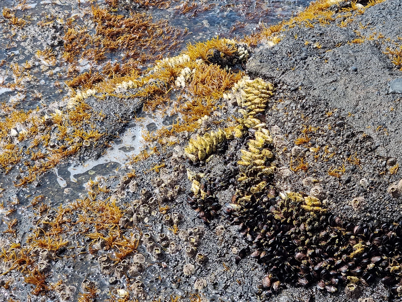 용머리해안에서는 해안절벽의 거대한 매력보다 바위에 붙은 거북손과 고동들에,