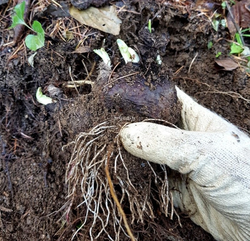 3, 4년에 한 번 정도 구근을 캐서 흩뜨려주는 게 좋다고 설명하는데 이는 이미 독립한 구근들이 새로 살 집을 찾아줘도 좋다는 의미이지 아직 모구에 붙어있는 자구들을 억지로 뗀다는 의미가 아니다.