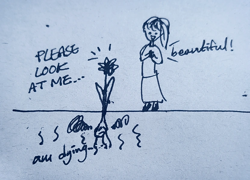하지만 야외 노지에 심었는데도 같은 이유를 찾는다면 그건 당초 그 땅에 원예용 화초가 들어갈 순서가 아직 아니며 화분에 키우고 있는 것과 다름없었다는 뜻이다.