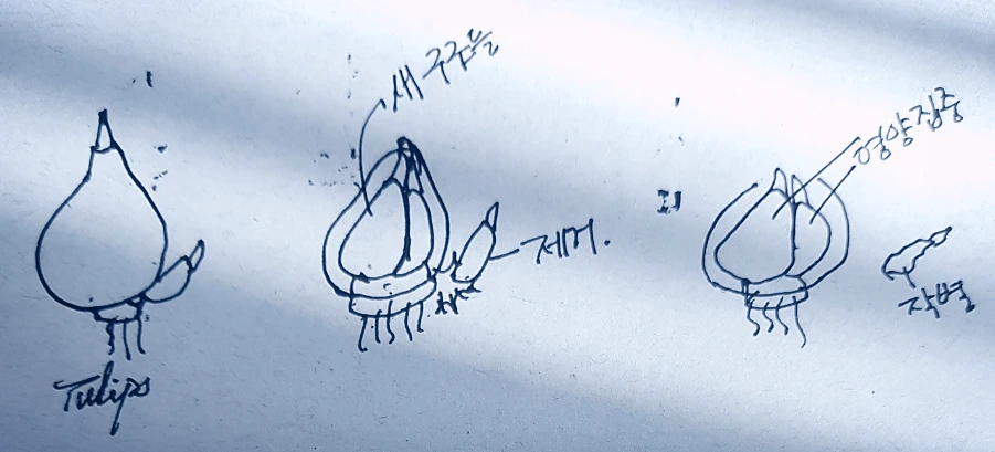 그리고 구근 식물은 다년생 식물로 한 곳에 뿌리를 내리고 오랫동안 살며 알뿌리를 늘리는 식물인데 매년 수확 해준다는 것은 1년에 한 번씩 이사를 다니는 청소년과 비슷하다.