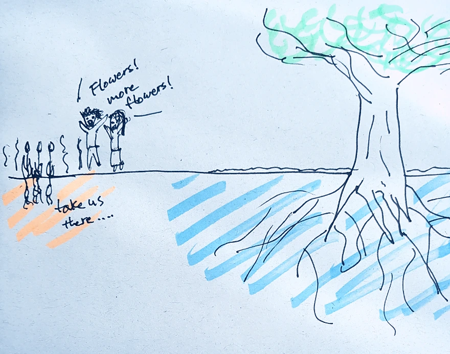 원예용 화초는 그 안에서 잡초만큼의 생명력을 지니지도, 나무들 만큼의 생산력과 흡수력을 지니지도 못해 자리를 잡기 전까지는 이런 생태계에 기생하는 형태로 살아가야 한다.