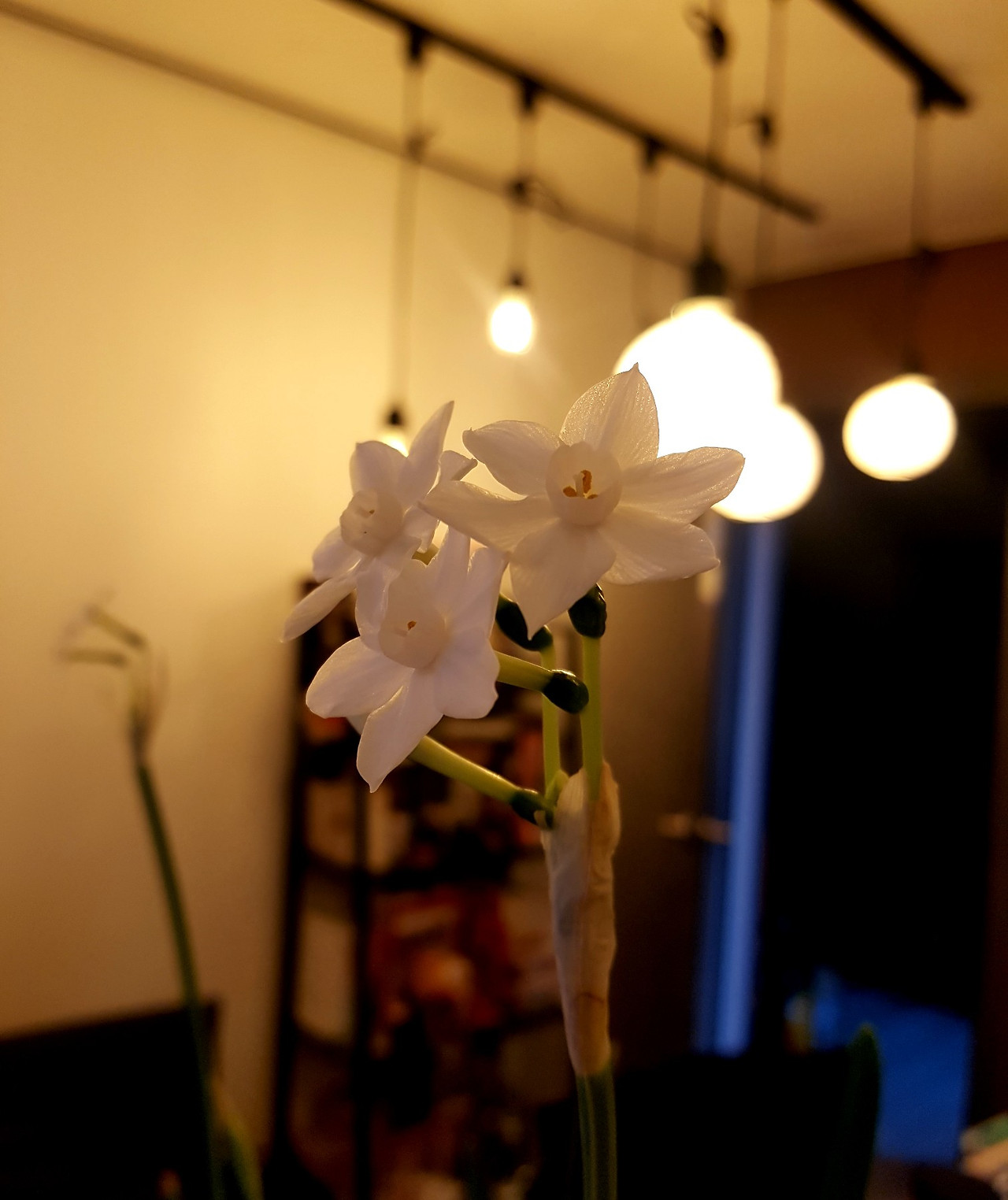 늦은 밤까지 작업을 하다 어두운 창문 밖을 배경으로 탁자 위에 피어있는 이 꽃을 볼 때면, 매년 보는 꽃인데도 감동 비슷한 느낌을 받는다.