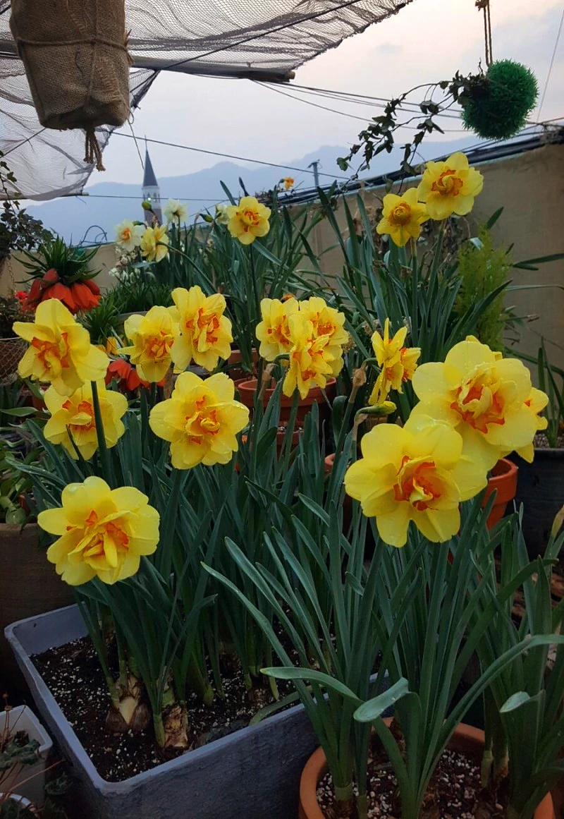 수선화 탈리아(Thalia)의 이름은 그리스 신화 속 사람들에게 웃음을 주는 희극과 목동들의 시를 맡던 뮤즈의 이름으로 '꽃을 피우다'라는 뜻 역시 가지고 있다.